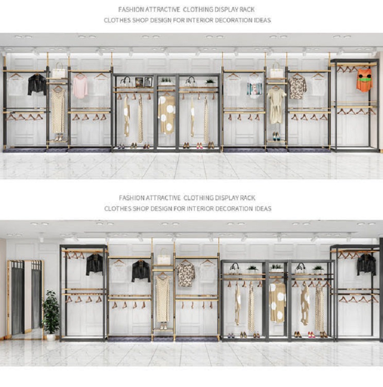 Men and women Clothing Shops Clothing GOLD SHOW STAND STAINLESS STEEL PLATED GUN BLACK HEATHEN COLUMNS DISPLAY STAND BY WALL COMBINED HIGH CABINET