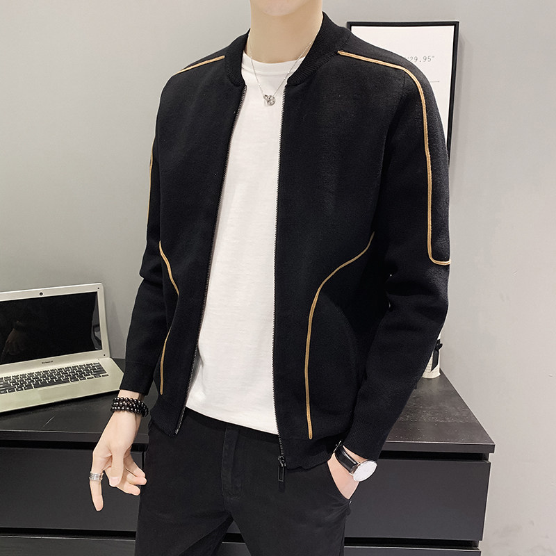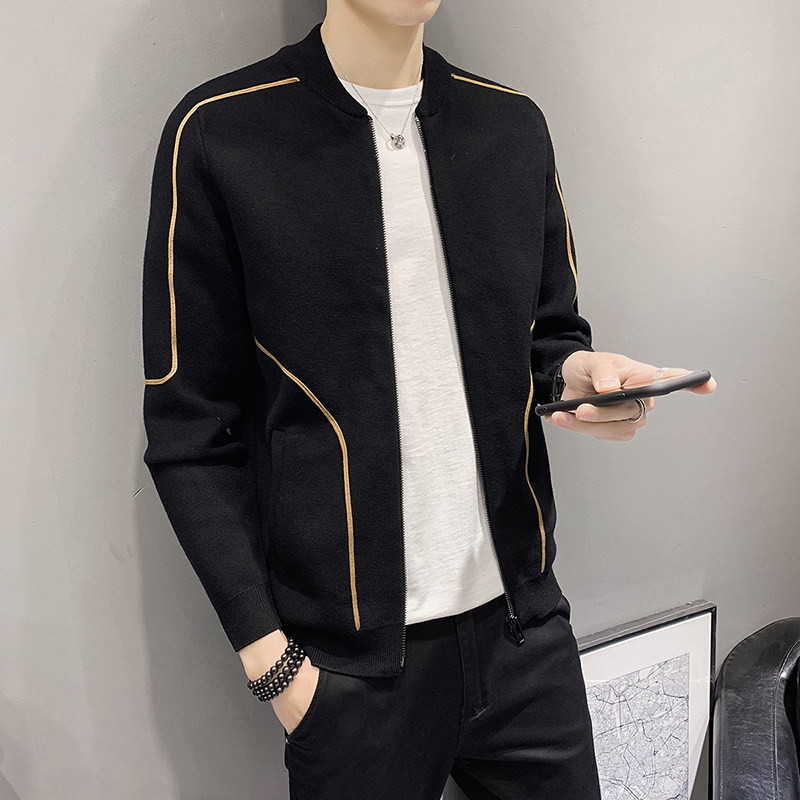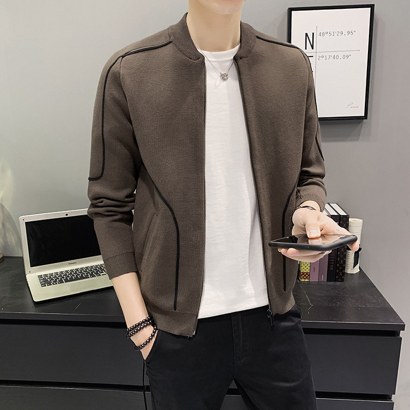 Tide Card Jacket Man Sweater Jacket Spring Autumn Season Han Edition Trend Sashimi Loose 100 Lap Collar Knit Cardiovert