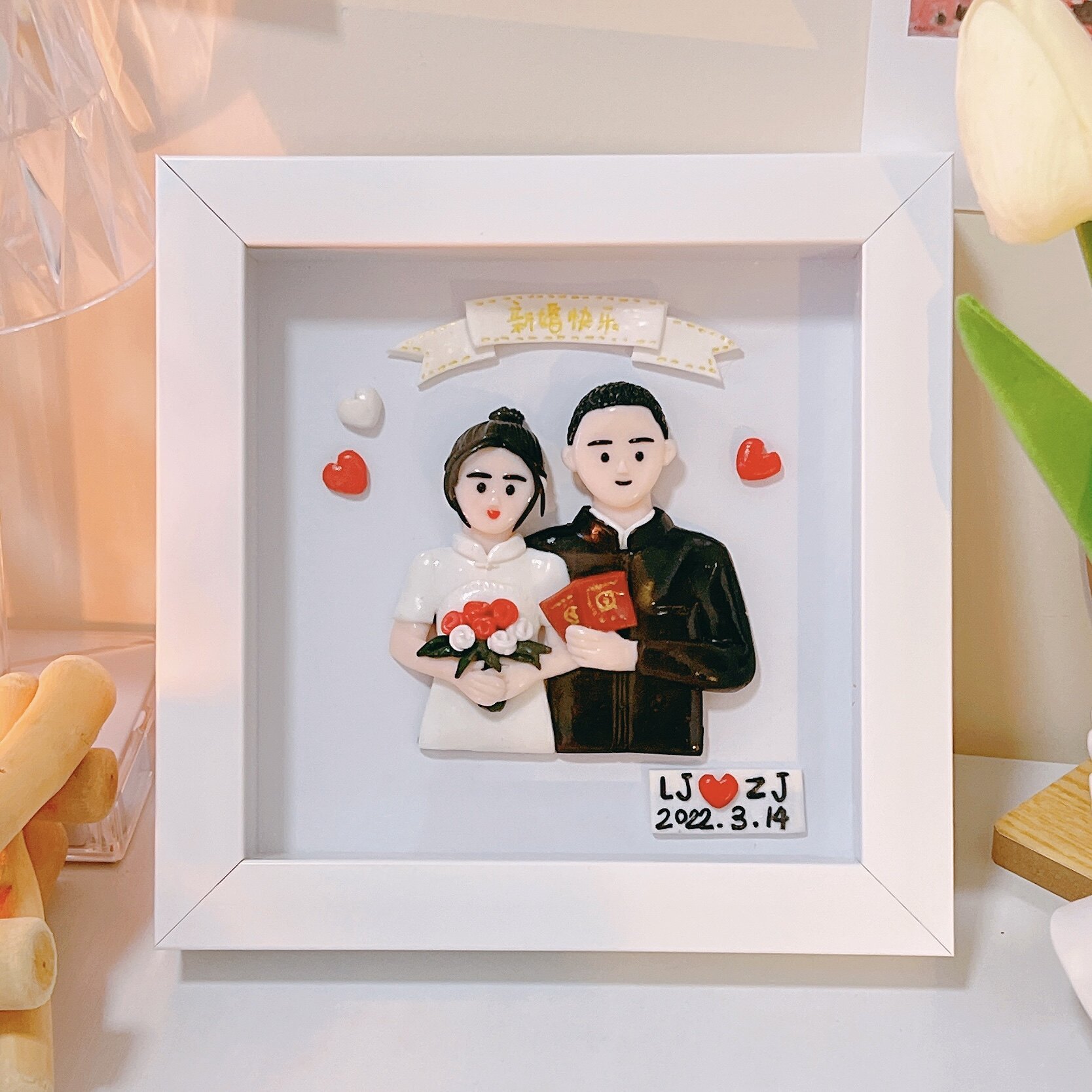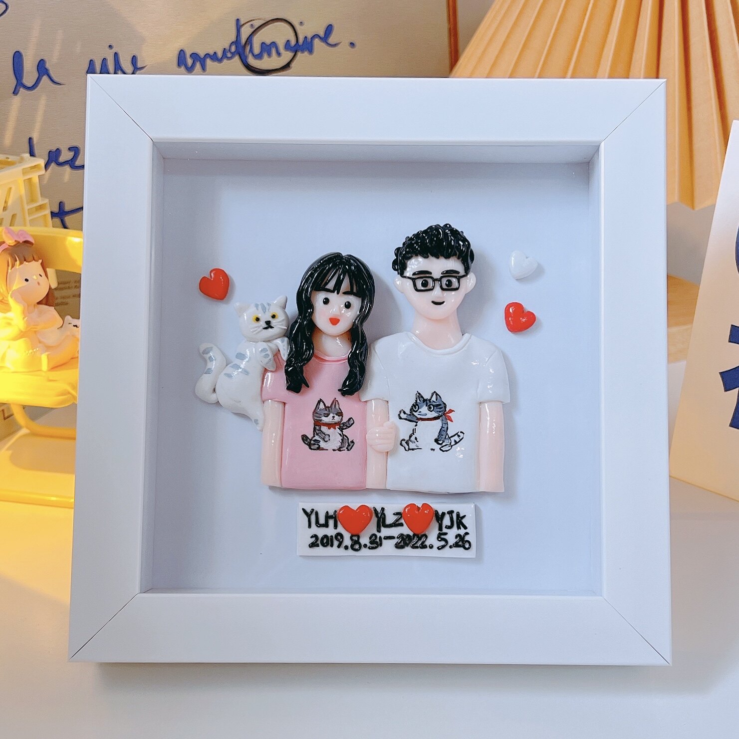 Yingzi Aimee soft pottery photo frame three-dimensional doll couple diy custom photo gift double small red book with the same paragraph