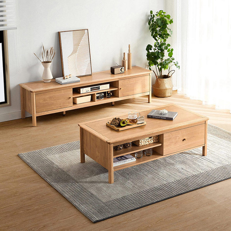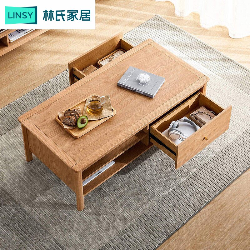 Lin's Wood Nordic minimalist solid wood frame coffee table small apartment home living room furniture log color tea table JU1L