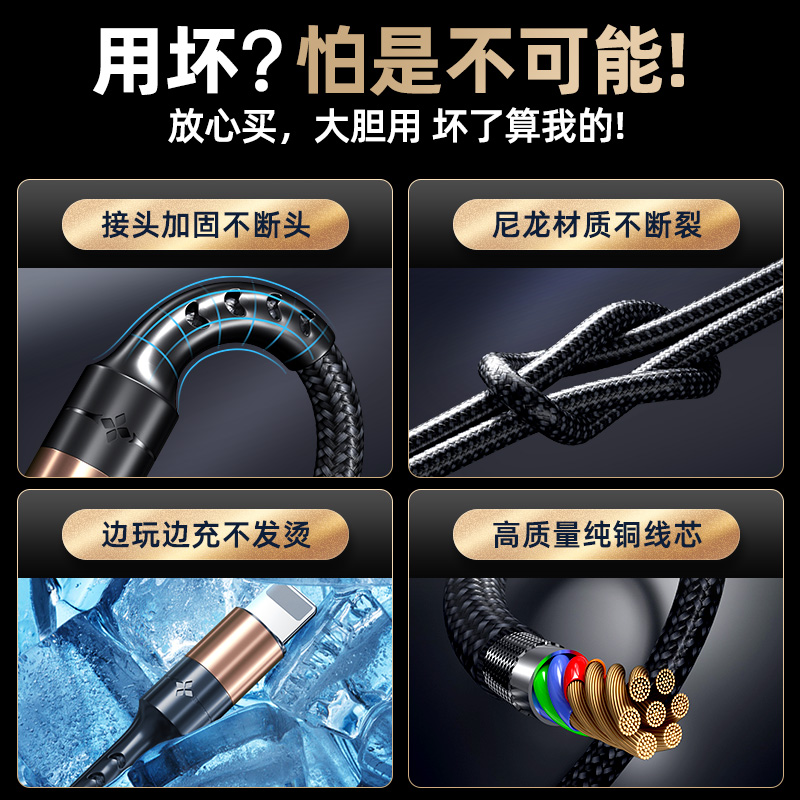 Data line Three-in-one charging line one drag Three-5a super fast charger Three-head versatile applicable apple Three-head vehicle three-head multipurpose headcar 2 m lengthened usb quick two-in-one