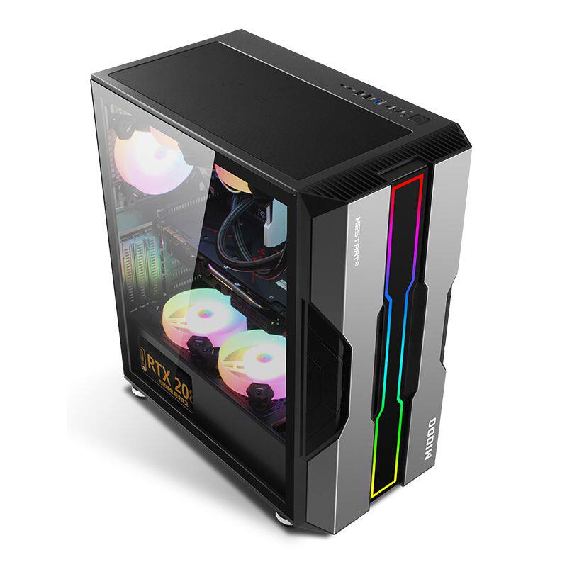Black Stone Tower Mozheng M1 wide body thickened RGB light bar game computer case supports ATX large motherboard 240 water cooling