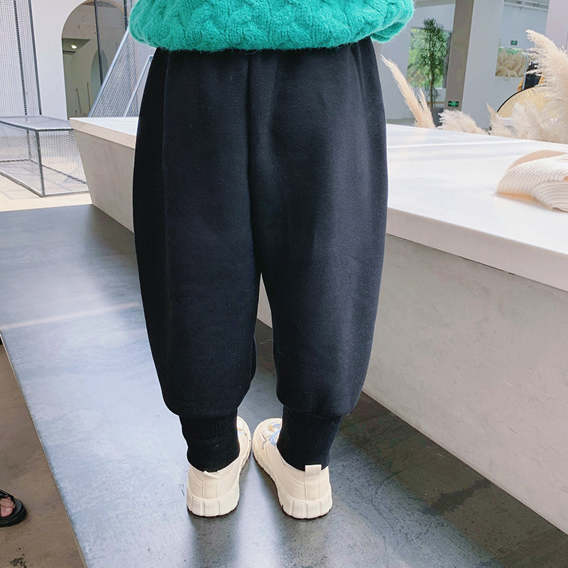 One piece velvet girl Harlan pants kids slacks baby sports long pants kids 2021 winter wear new model