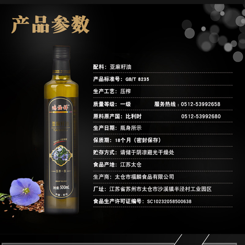 Hongfu Xiangxiang Belgian imported crude oil pressing first stage edible oil flaxseed oil gift box 500ml*2