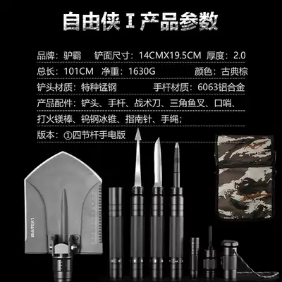 Outdoor engineer shovel multifunctional folding shovel German manganese steel military shovel with flashlight lighting shovel digging soil