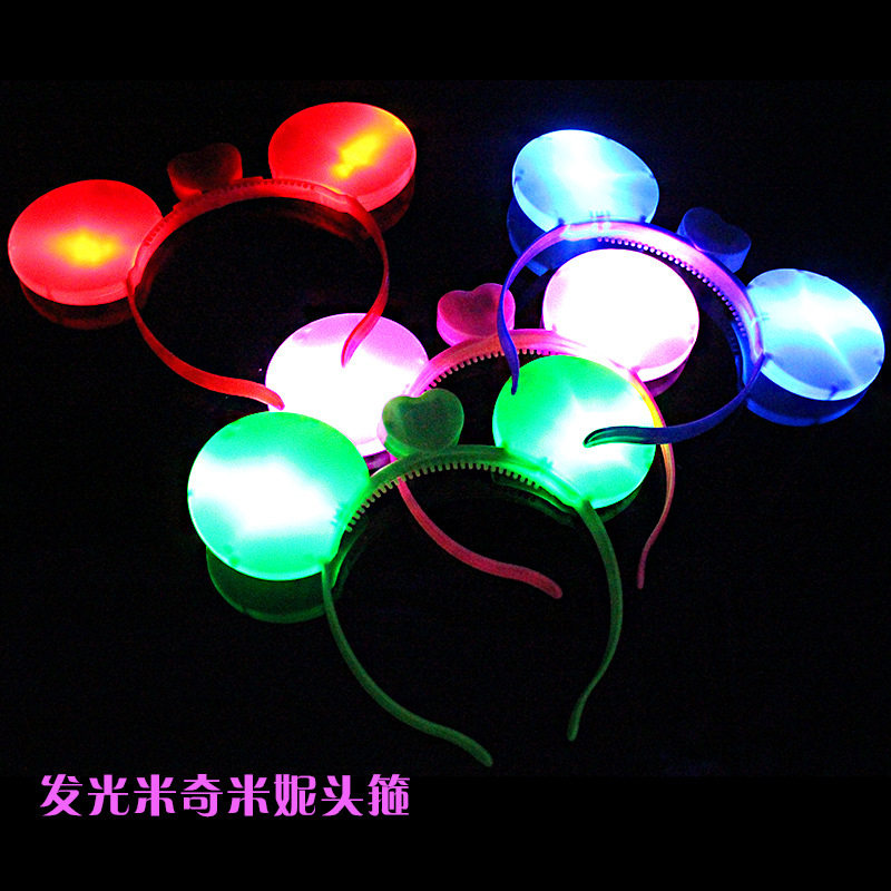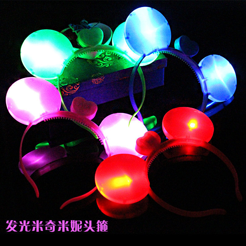 Children's luminous toy flash headwear Korean version horn wreath Mickey bow concert night market factory direct sales