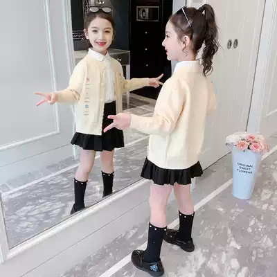 Girls cardigan sweater jacket 2021 new autumn casual girl single-breasted children's western style autumn sweater