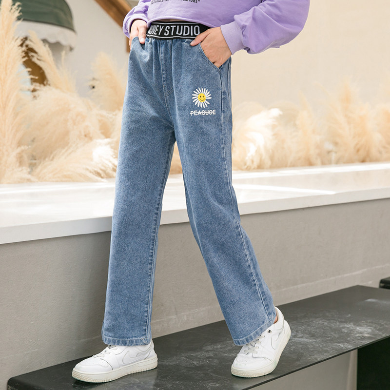 Girls pants spring and autumn wear loose autumn straight tube recreational trousers for large children in large-legged pants