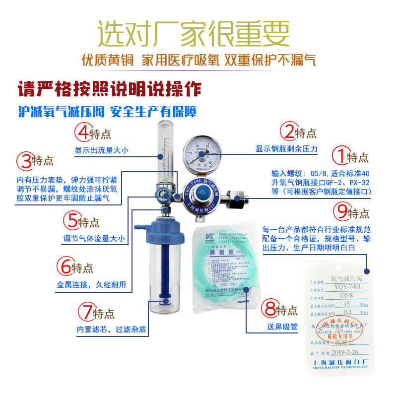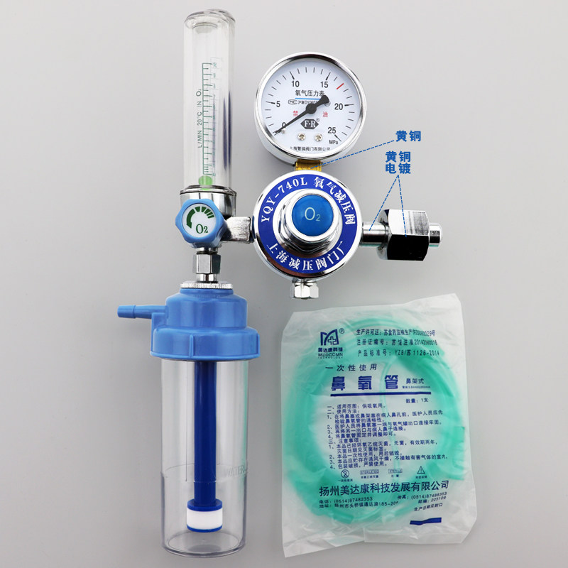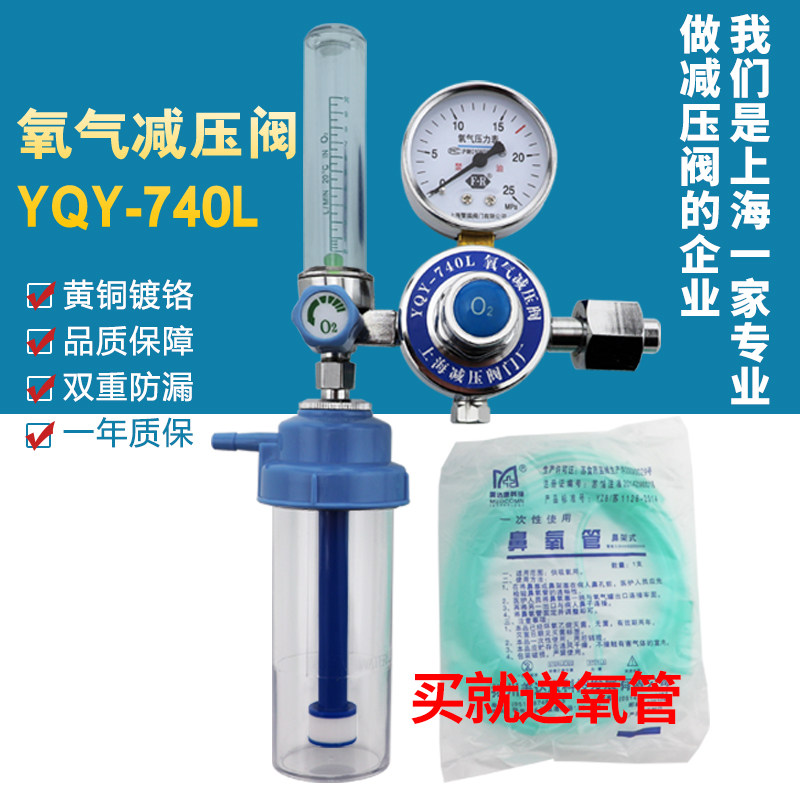 Shanghai Shanghai oxygen reduction valve YQY-740L oxygen inhalation pressure reducer household cylinder table to send humidification bottle tube