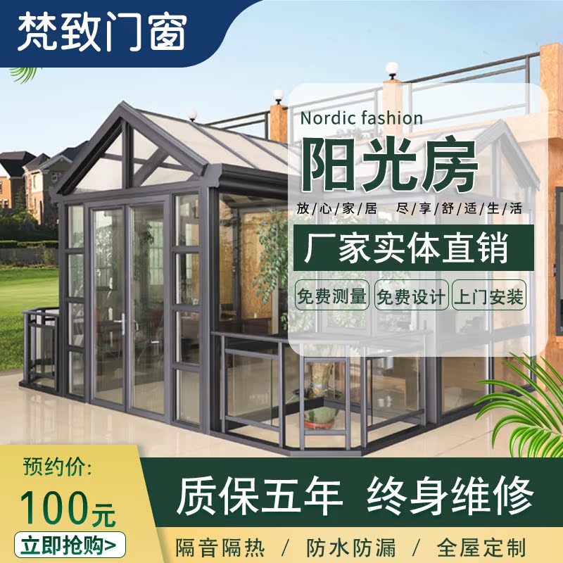 Shanghai villa greenhouse broken bridge aluminum doors and windows seal balcony custom steel structure Aluminum alloy greenhouse seal terrace