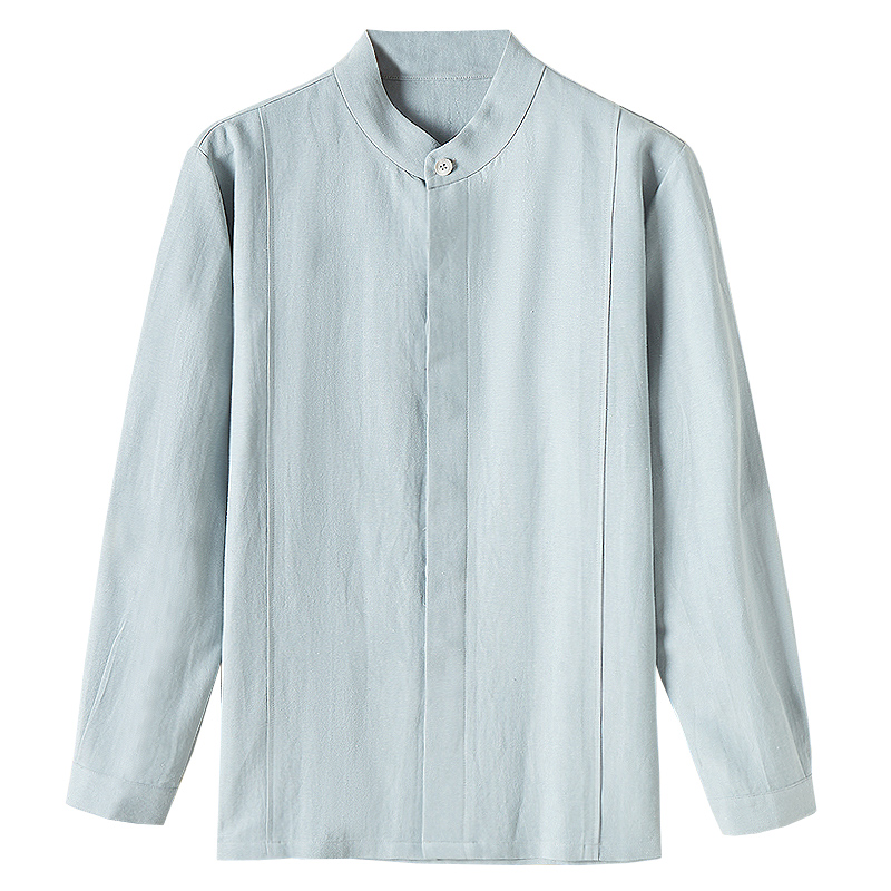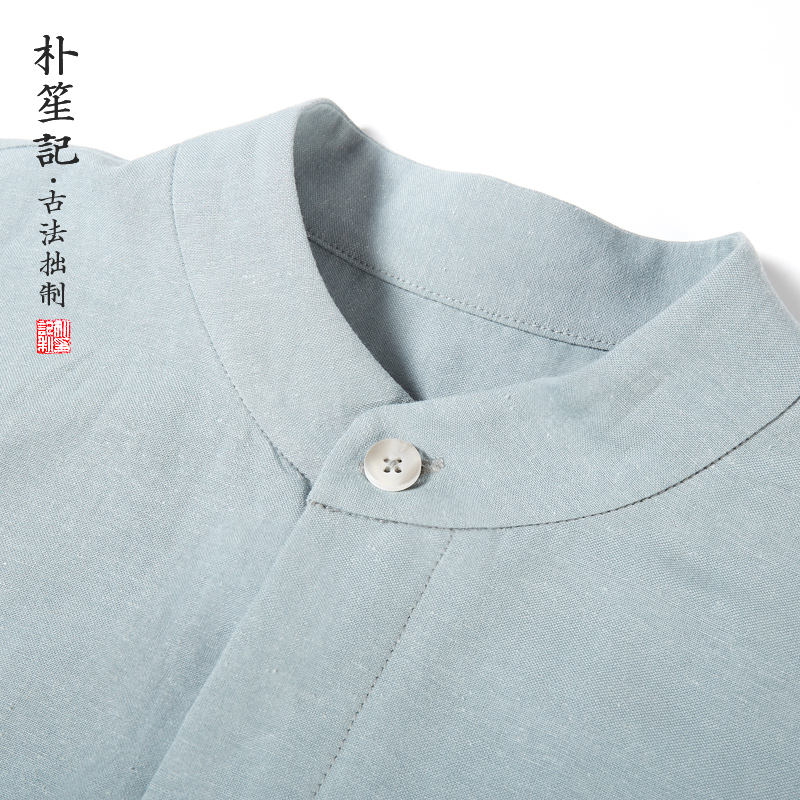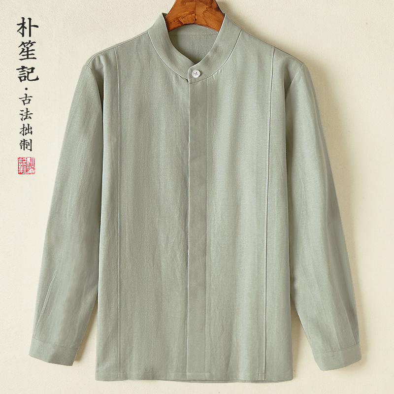 Original men's linen shirt Vintage Chinese style spring and autumn summer base shirt Stand collar loose large size breathable top