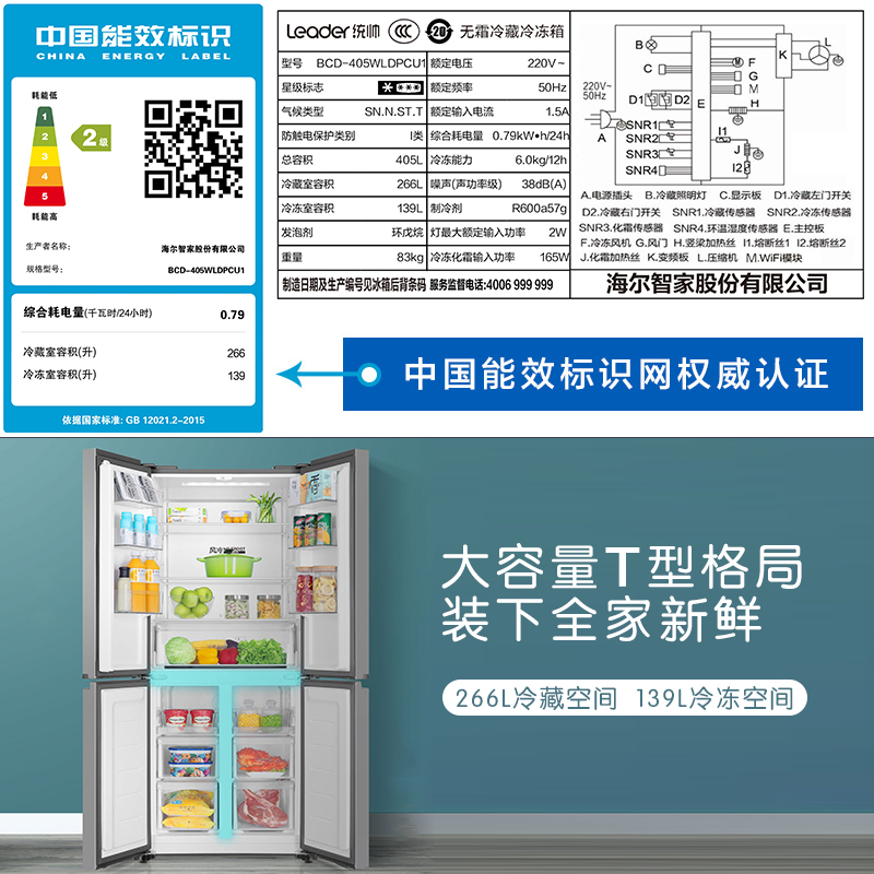 Haier commander-in-chief cross four doors frequency conversion air-cooled frost-free smart home refrigerator BCD-405WLDPCU1
