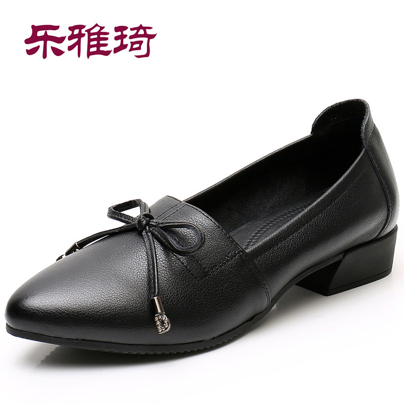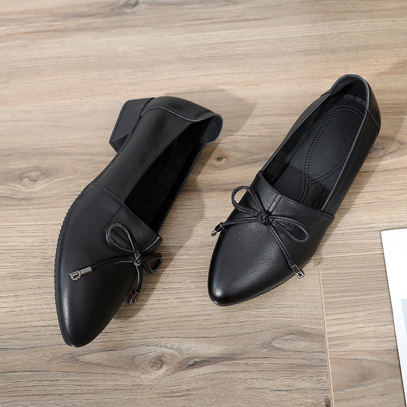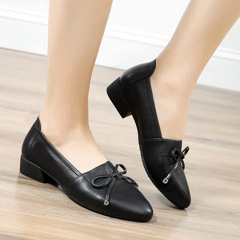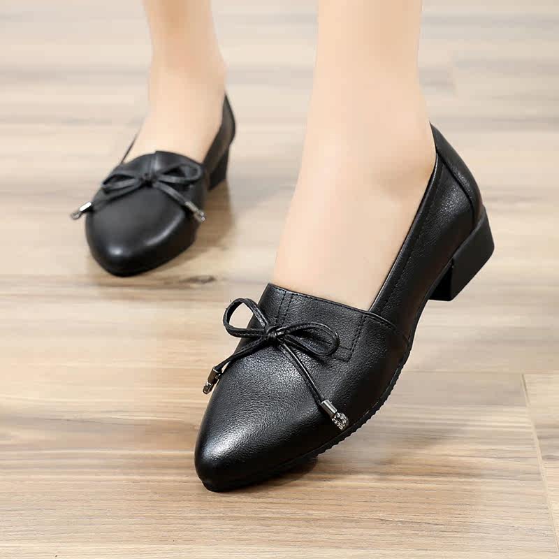 Leather middle-aged women's single shoes square heel mother shoes comfortable soft bottom women's shoes spring and autumn casual women's leather shoes non-slip beef tendon sole