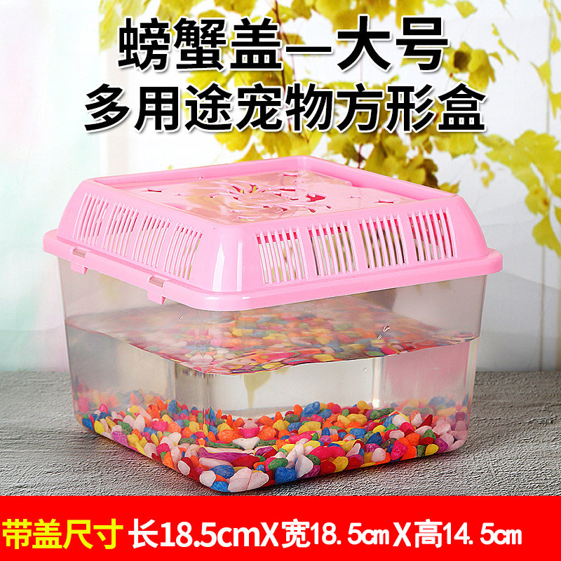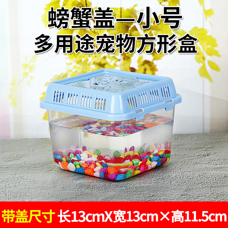 Large and small portable transparent plastic square fish box closed turtle raising pet box fish raising turtle box