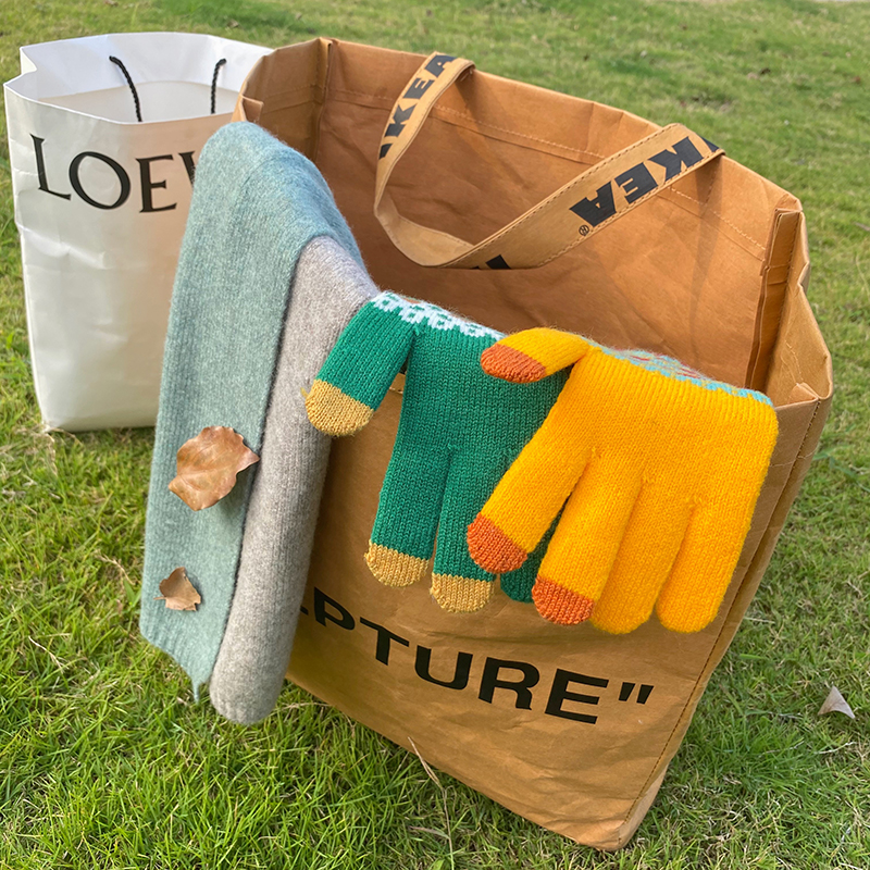 Shark warm little woman atmosphere of hair gloves coloured warm students touch screen autumn winter cute plywolf girl
