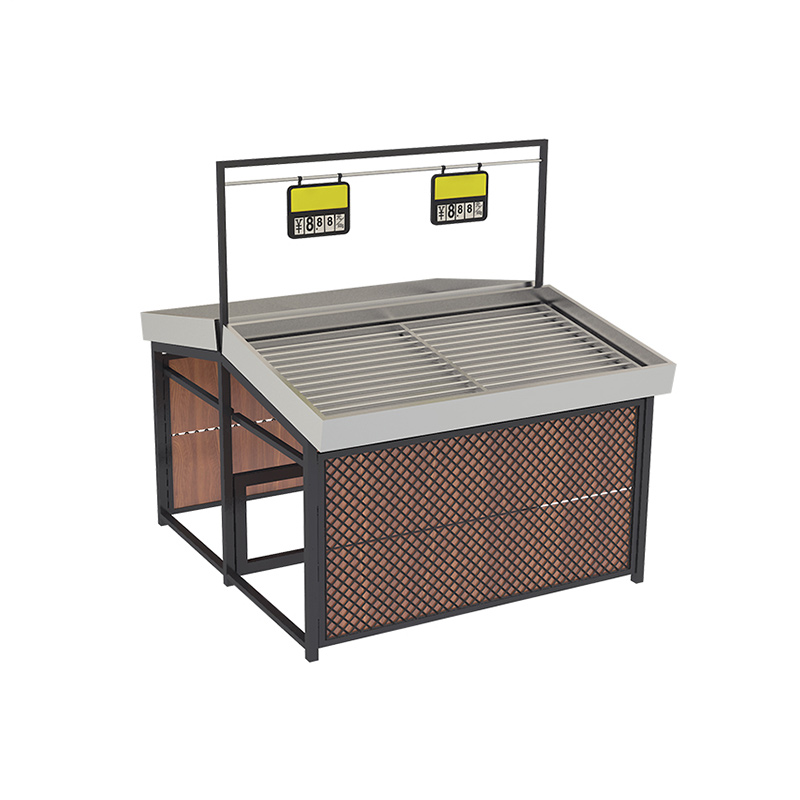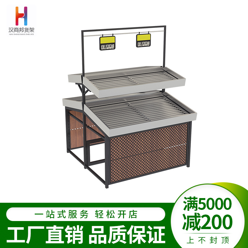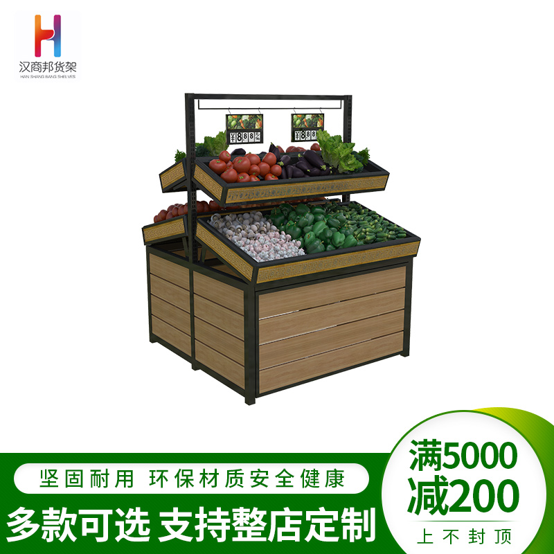 Supermarket fresh fruit shelf vegetables against the wall multi-layer steel wood display rack multi-functional Guangdong shelf factory direct sales