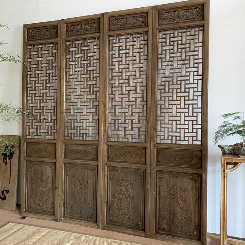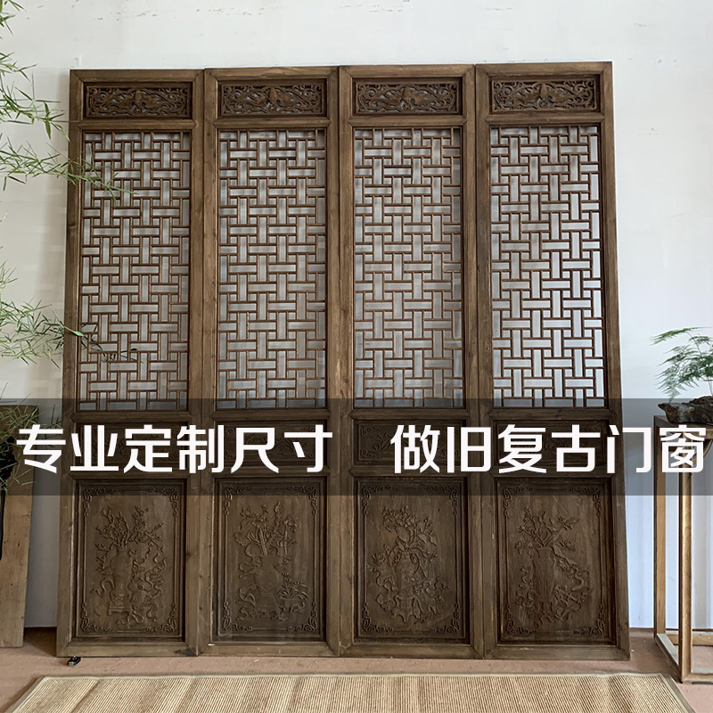 East Yang Wood Carving Imitation Ancient Make Old Screen Real Wood Door Chinese Hollowed-out Lattice Screen Partition Retro Flower Window Custom-Taobao
