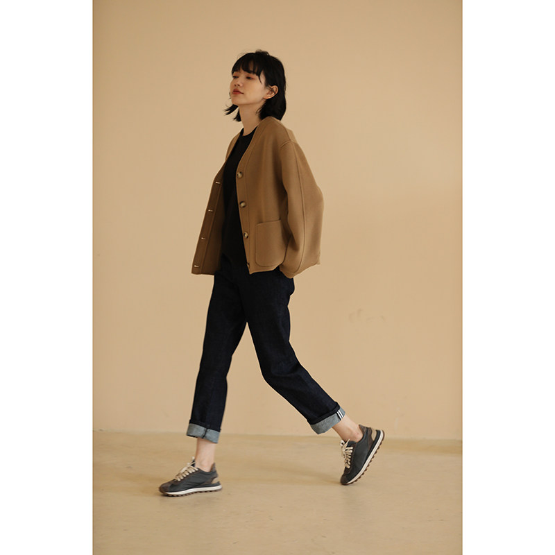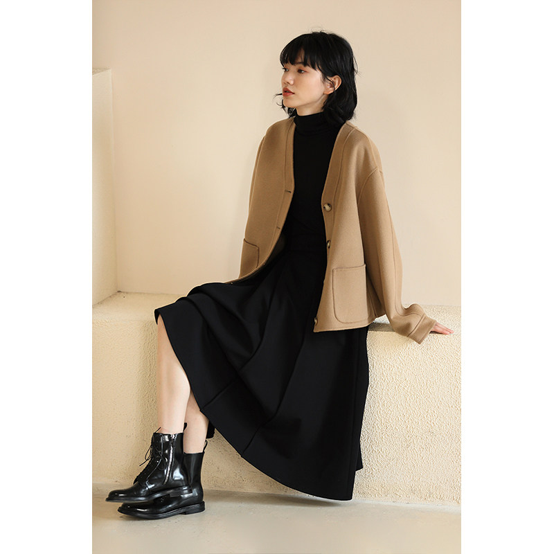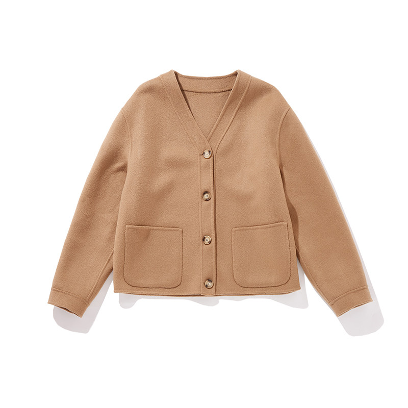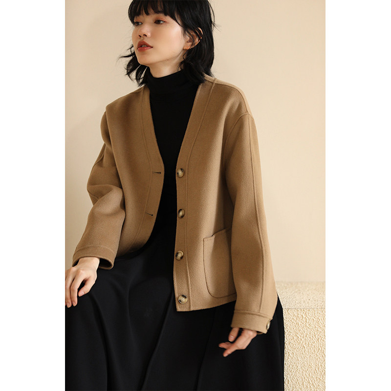 Miss Hatee autumn new small wool camel handmade texture double sides simple short coat coat woman