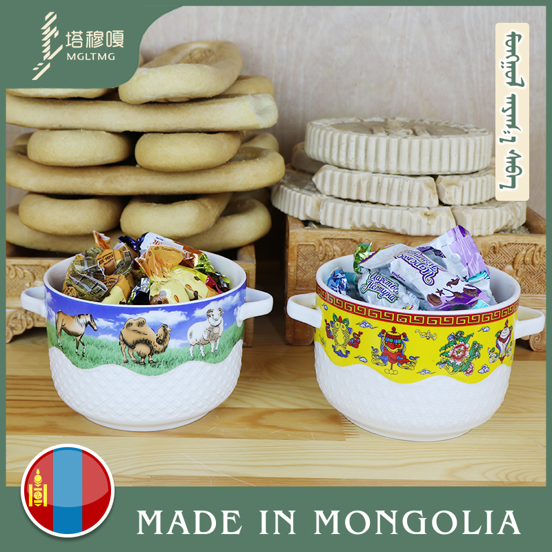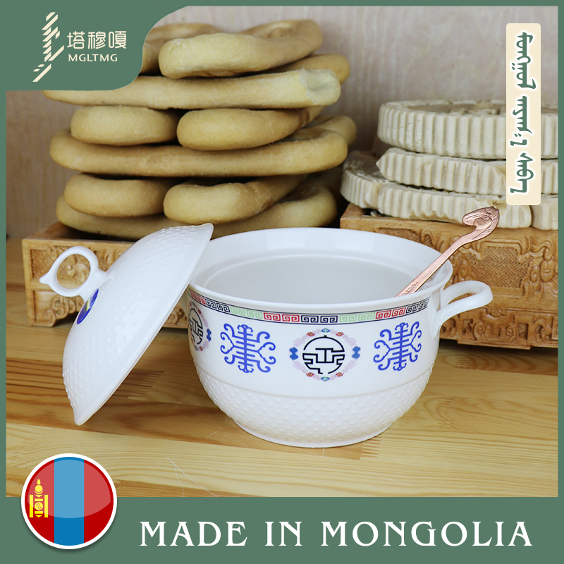 Mongolian soup bowl features ceramic with canned canned tea canned canned bowl bowl bowl and grassland gift Mongolian tableware soup pot