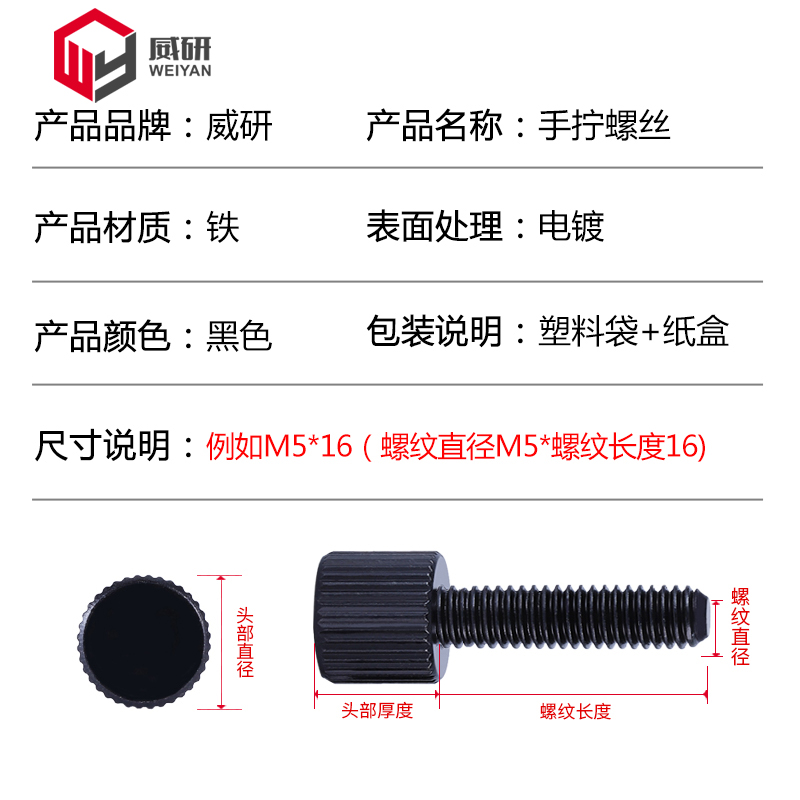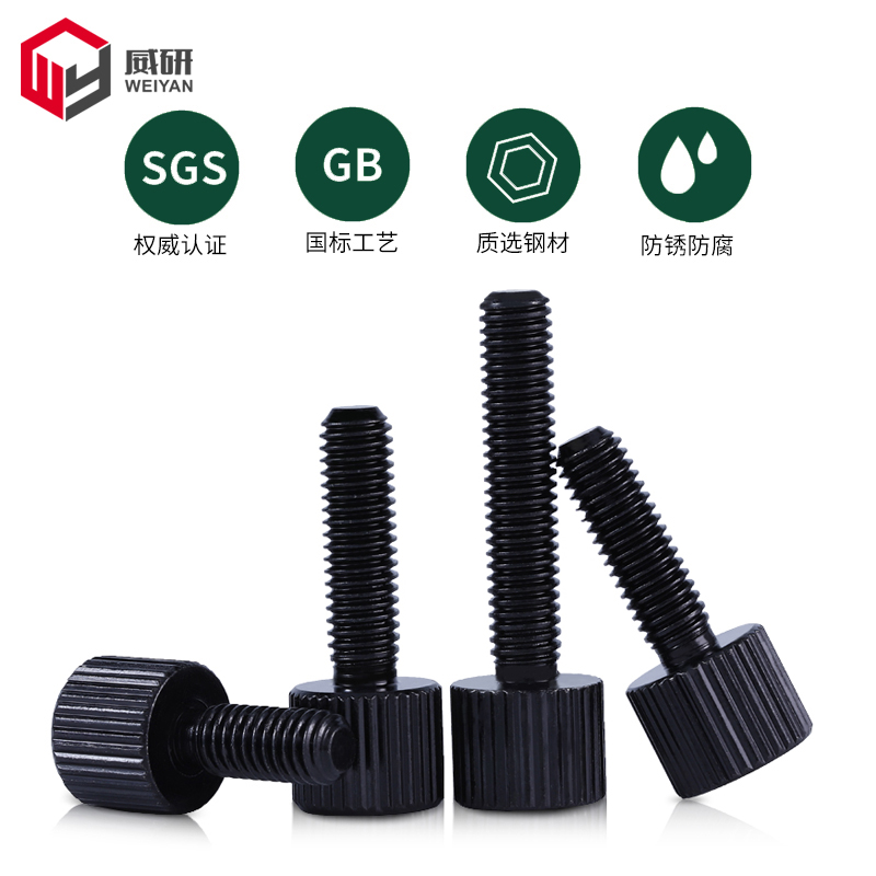 Iron single head hand wringing screw M2M3M4M5M6 black straight grain round flat head knurto host shell hand tight screws