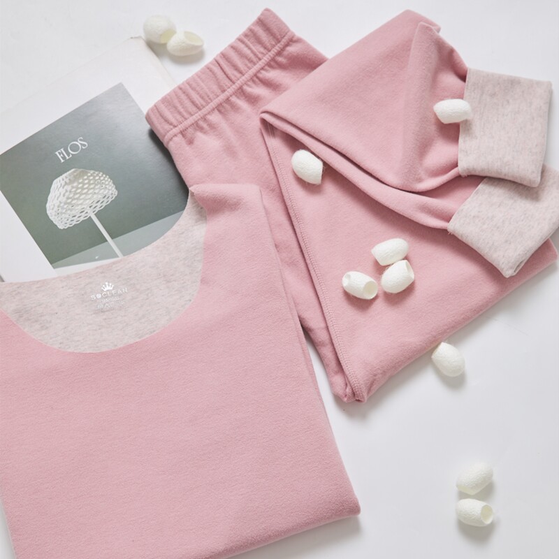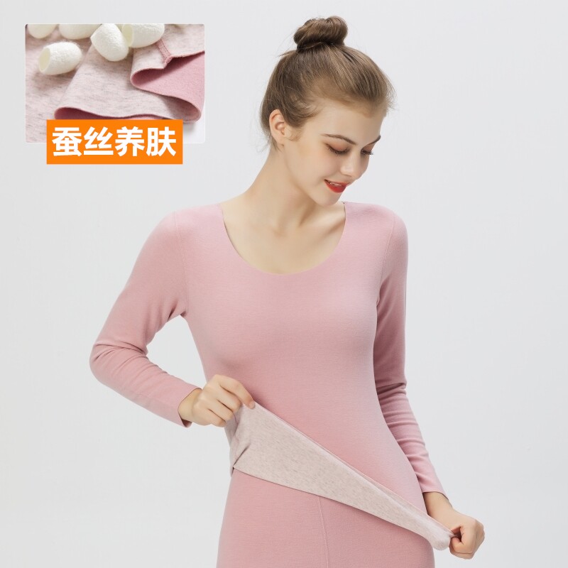 Two-color (mulberry silk) women's non-trace velvet double-sided brushed thermal underwear set long johns