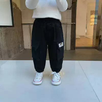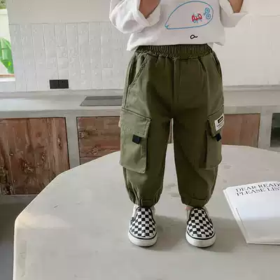 Boys overalls autumn 2021 new middle and small children's casual pants baby western style spring and autumn sports pants