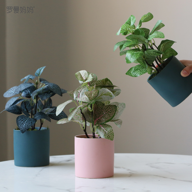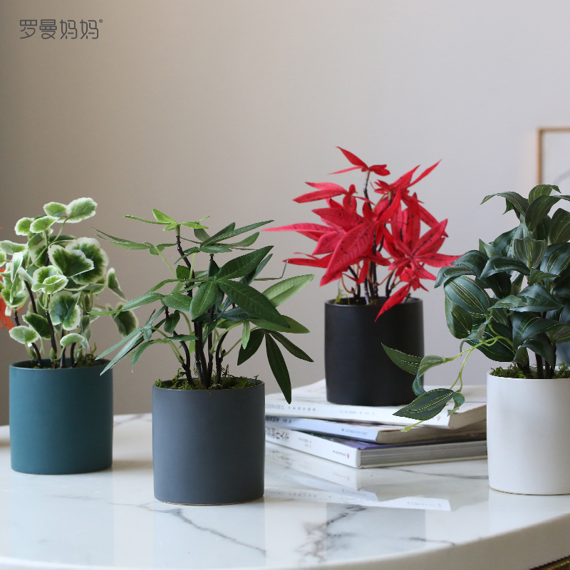 Fortune tree potted red leaf with black pot Fortune tree potted yellow leaf with white pot Eyebrow leaf potted white pot Begonia leaf potted blue pot Reticulated grass potted green leaf with blue pot Reticulated grass potted