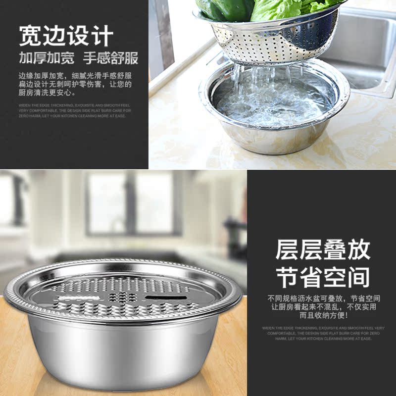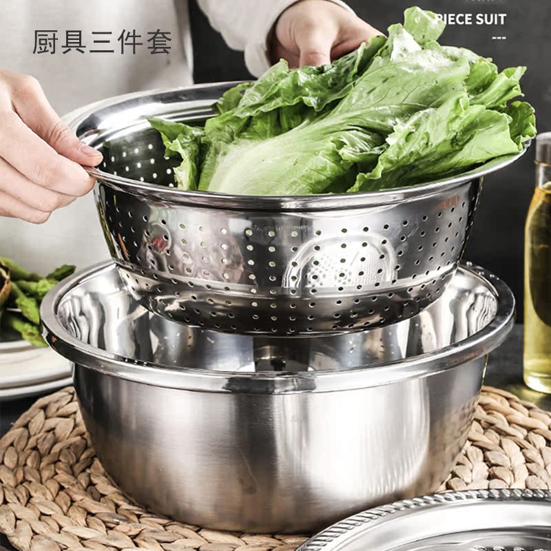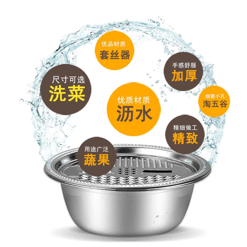 Food-grade household kitchen drain basket 304 stainless steel vegetable wash basin bowl male and noodles beating eggs and rice fruit basin