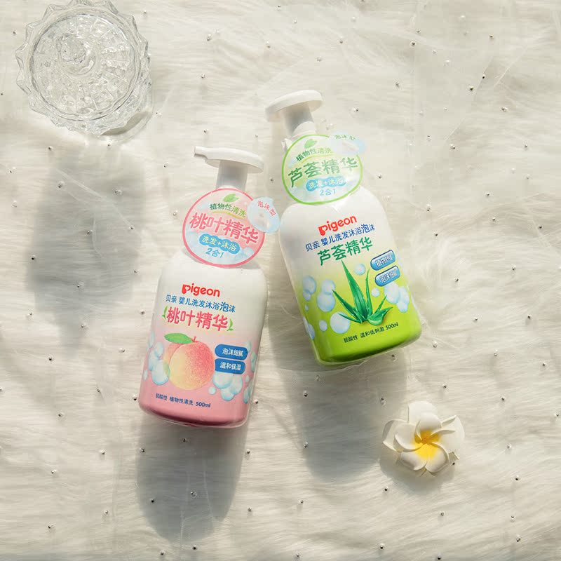 Yoo Sauce Recommended) Japanese Pigeon Peach Leaf Aloe Vera Baby Shampoo and Shower Gel 2-in-1 Mild