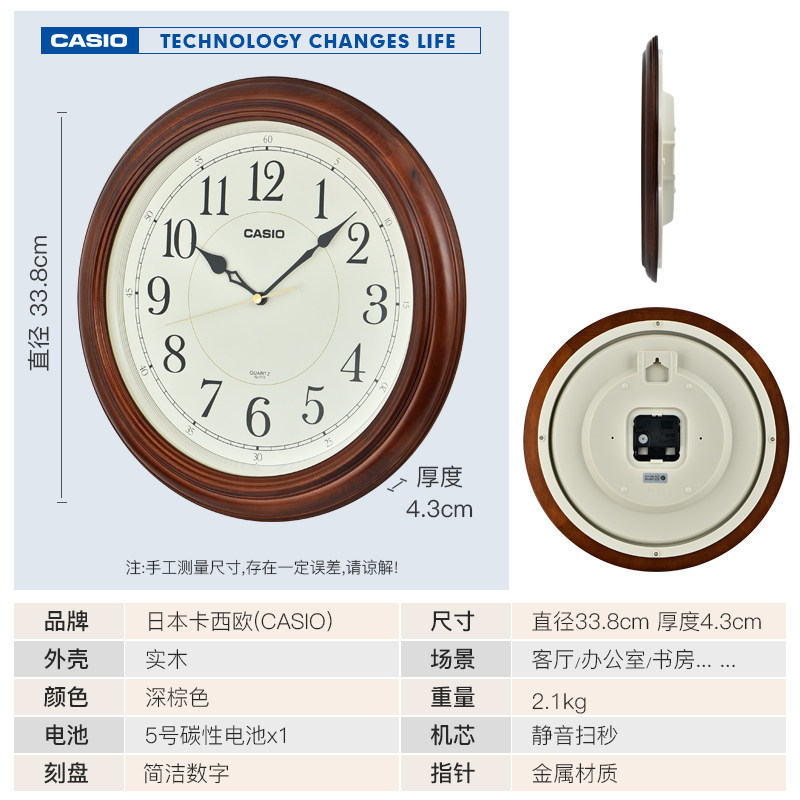 Casio CASIO solid wood hanging bell new Chinese home living room bedroom mute clock office quartz clock-Taobao