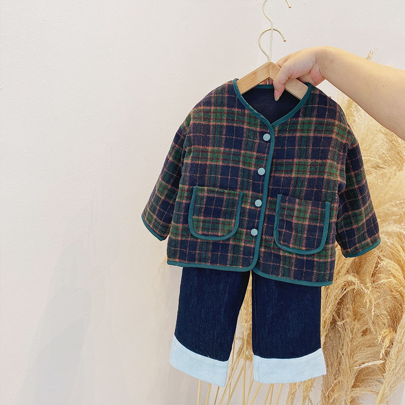 Children's woolen coat Western style 2021 autumn new girls' plaid top middle and small children's Korean version of children's clothing trend