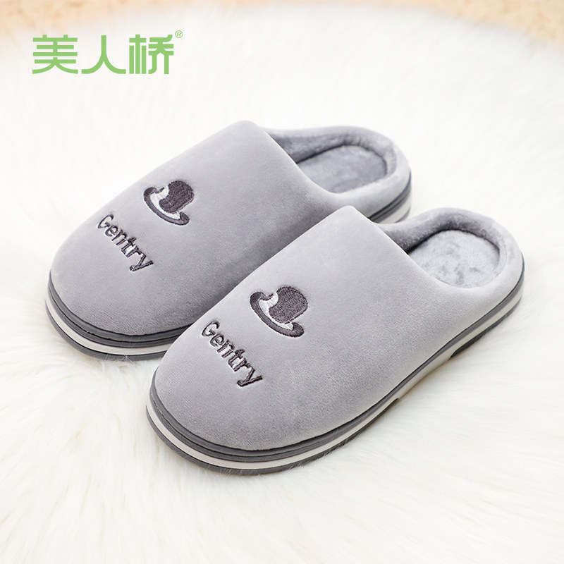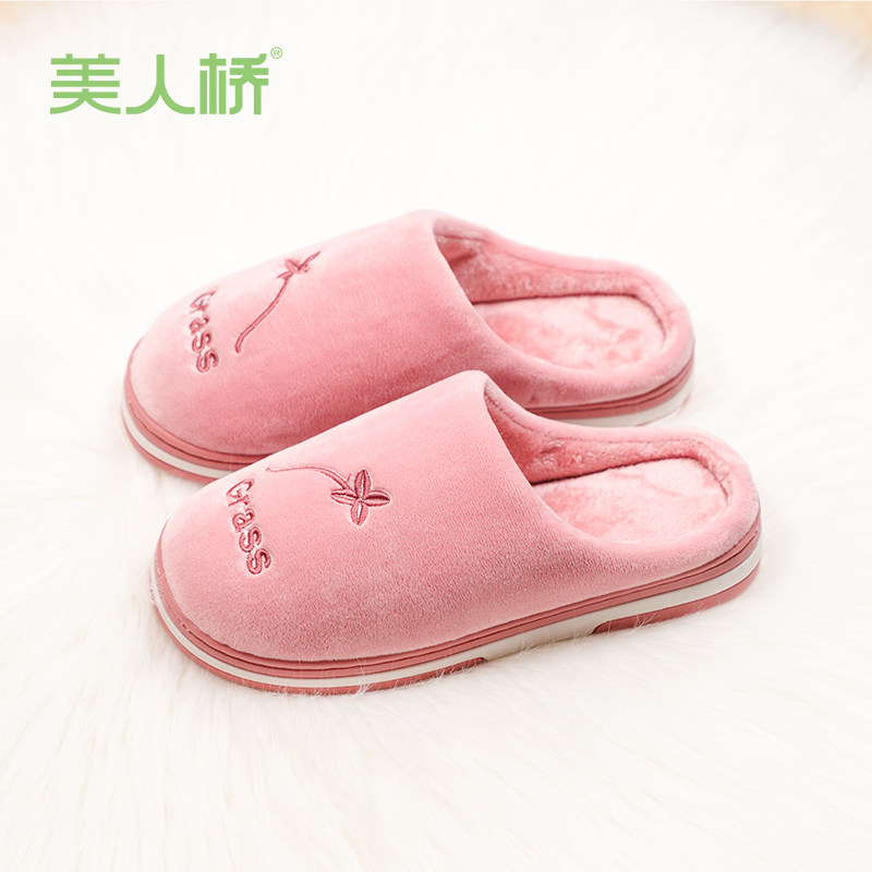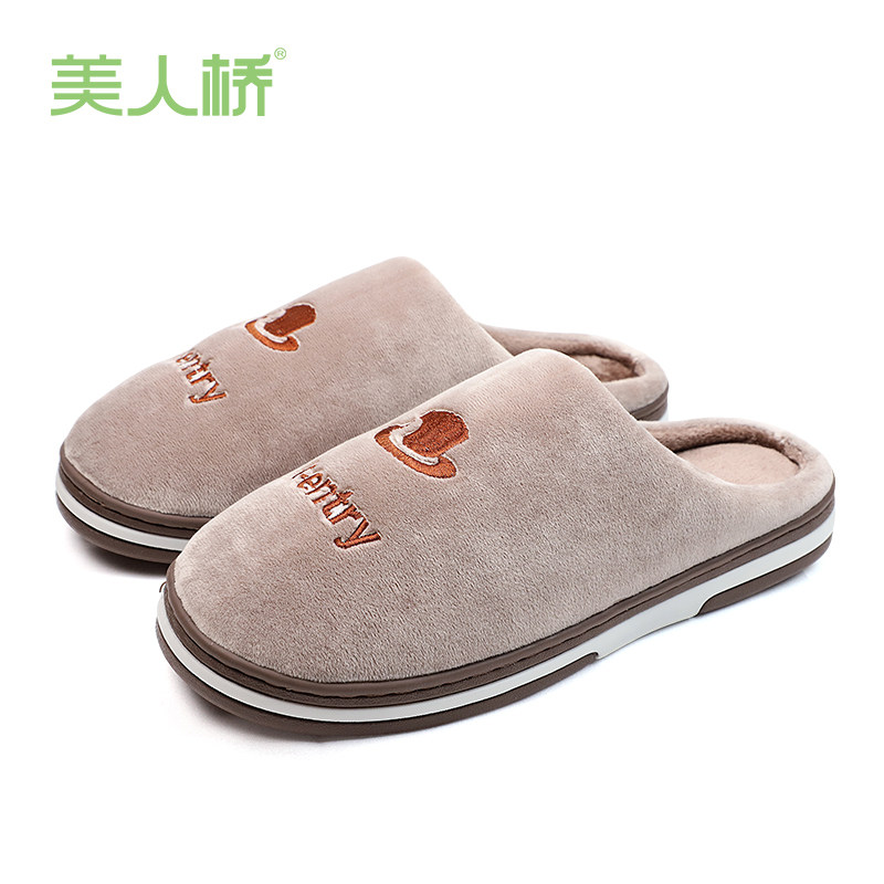 Beauty bridge cotton slippers warm indoor home couple plush thick soles winter anti-slip leisure daily