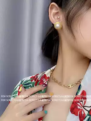 Retro Hepburn style simple button shape pearl earrings temperament retro elegant wind diamond earrings earrings female