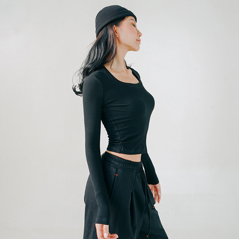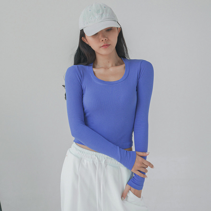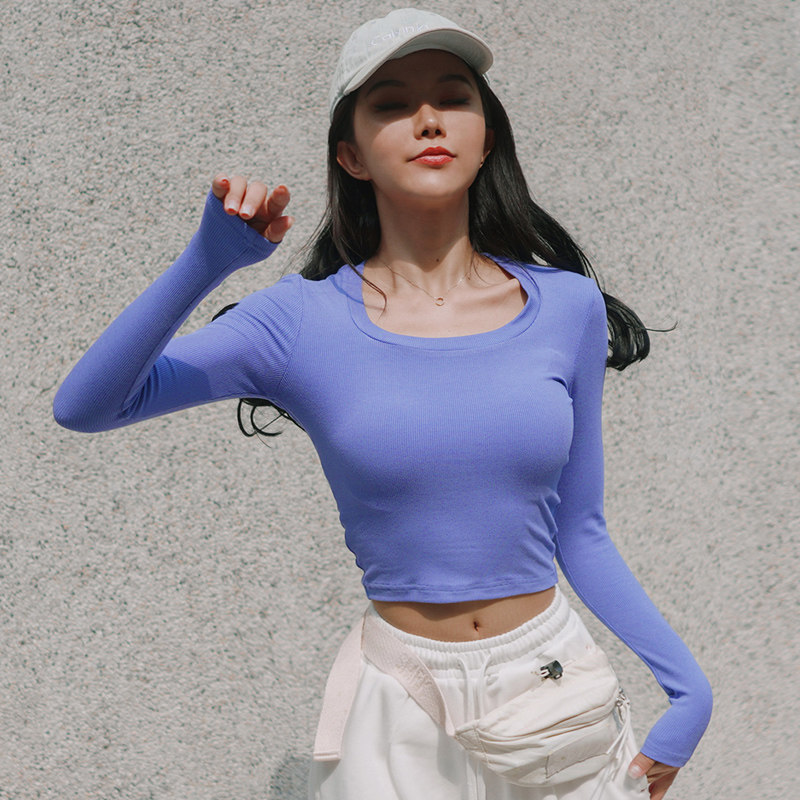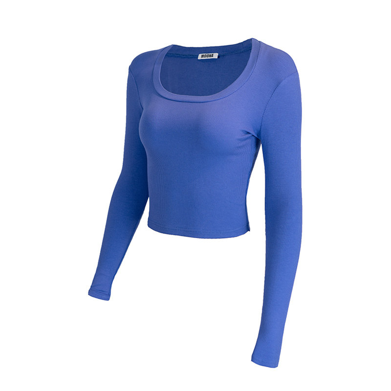 MOONA white long sleeve T-shirt female spring autumn slim fit pure cotton high waist and body knitted undershirt with thin and short blouses