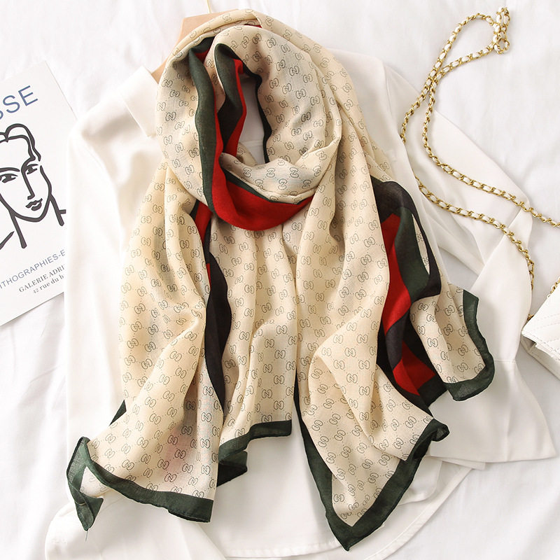Net red scarf female Korean version all-match dual-purpose yarn scarf linen spring autumn winter silk scarf cotton linen striped black scarf
