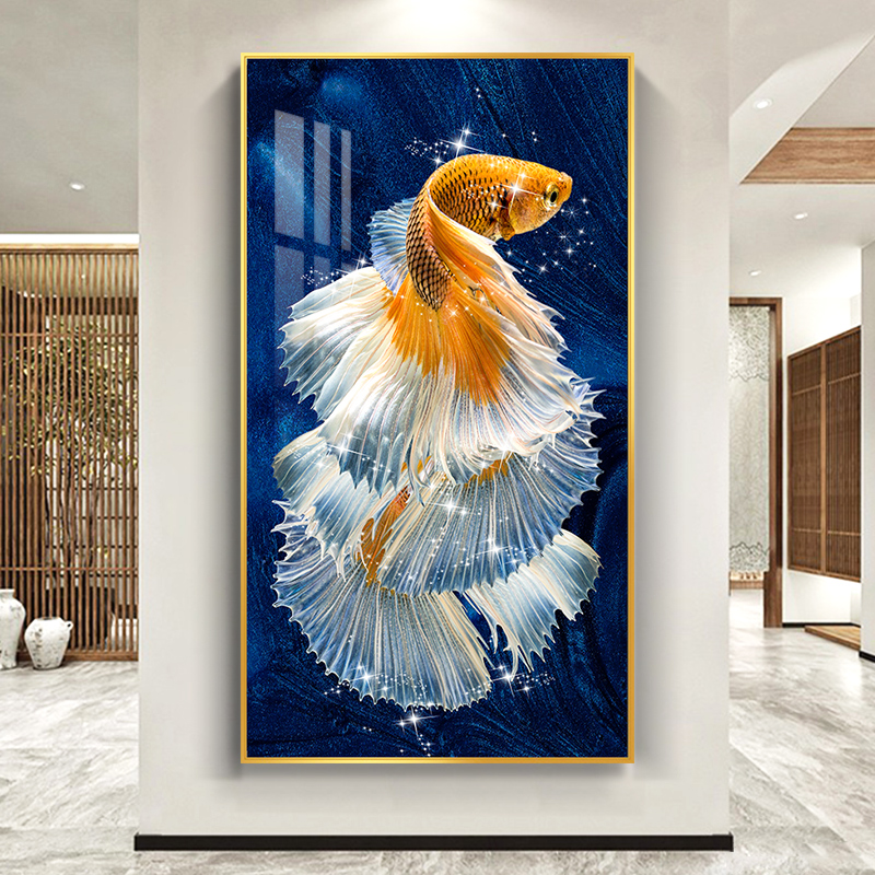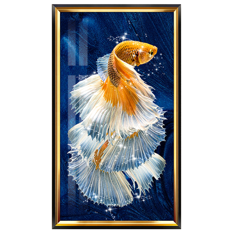 Golden Fish Brocade Carp Cross Embroidered 2021 New Living Room Xuanguan Vertical Version Thread Embroidered New Chinese Small Pieces Hand Themselves Full Embroidered