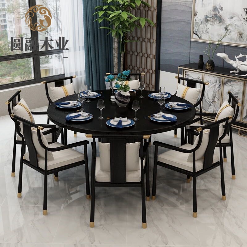 New Chinese-style solid wood dining table and chairs one table and six chairs Zen modern homestay model room teahouse club box room furniture