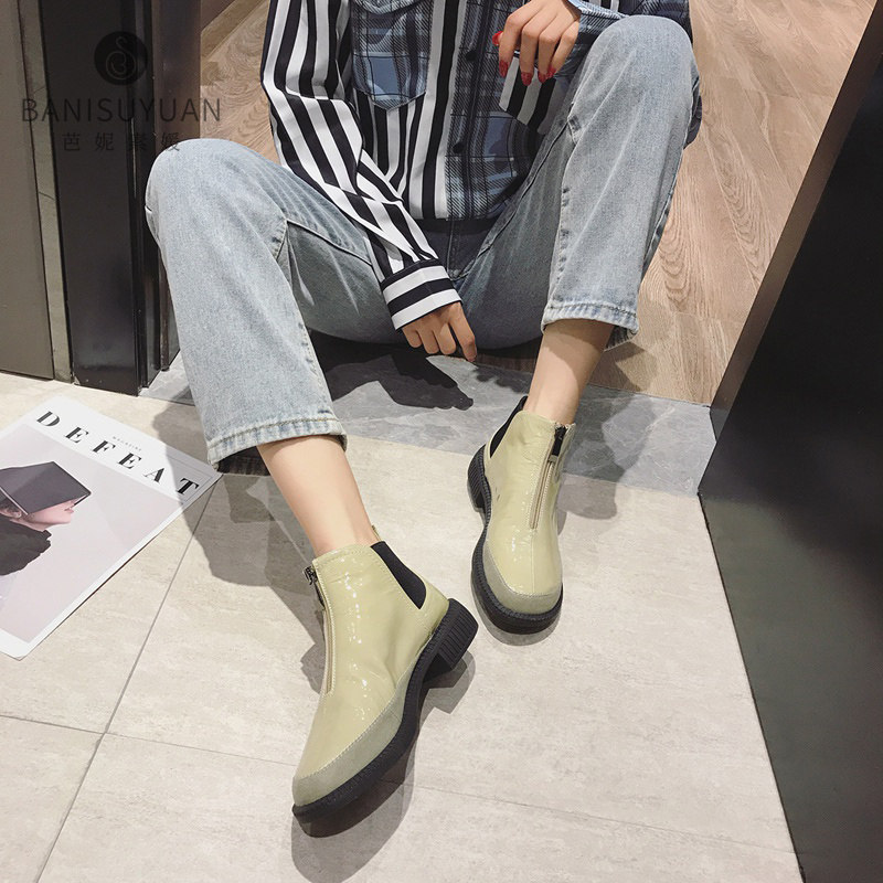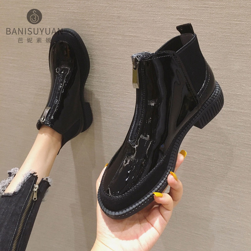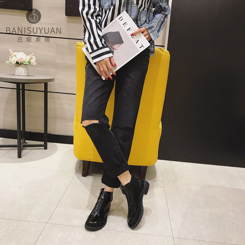 Boots Children Short Boots Spring Autumn New Leather Flat Bottom Single Boots Casual 100 lap black Soft bottom Inn Wind Martin boots
