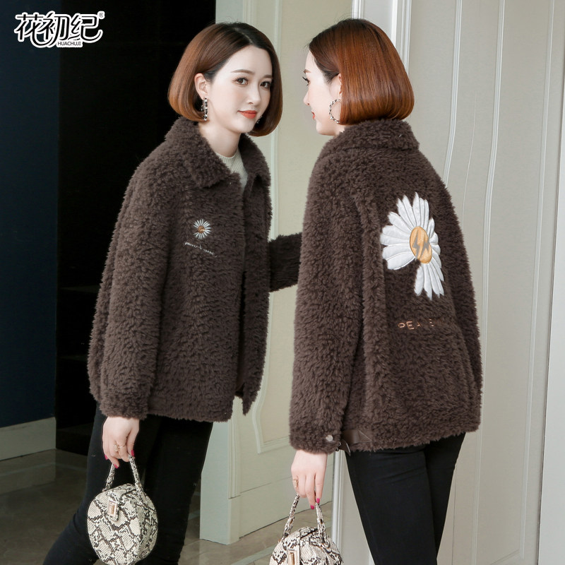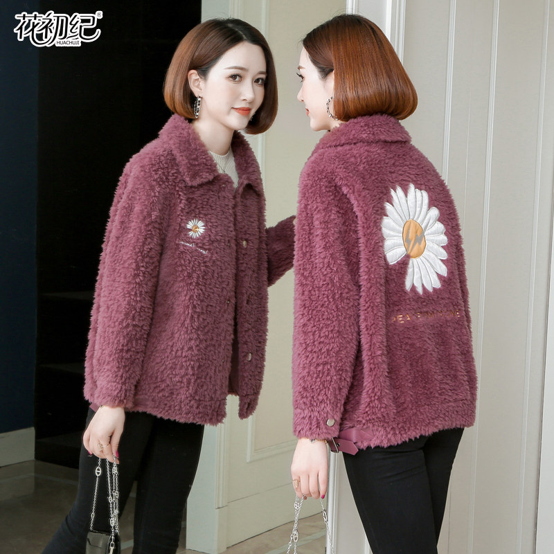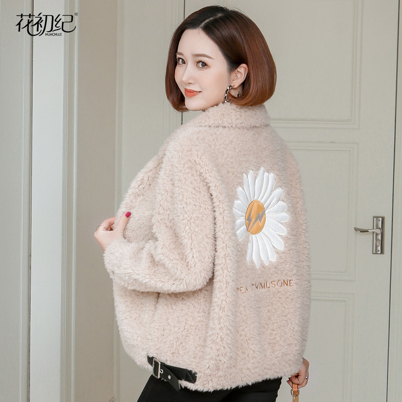 Grain goat cut down big coat woman short section 2021 new Korean version fur integrated lamb fur straw jacket small sub