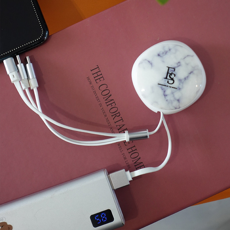 EVENSHOW marble pull-out cable three-in-one mobile phone for ipad apple iphone Huawei Android