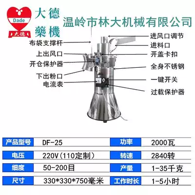 Dade DF25 high efficiency 2000W Tianpanax notoginseng grinding powder ultra-fine 200 mesh Chinese herbal medicine grinding machine