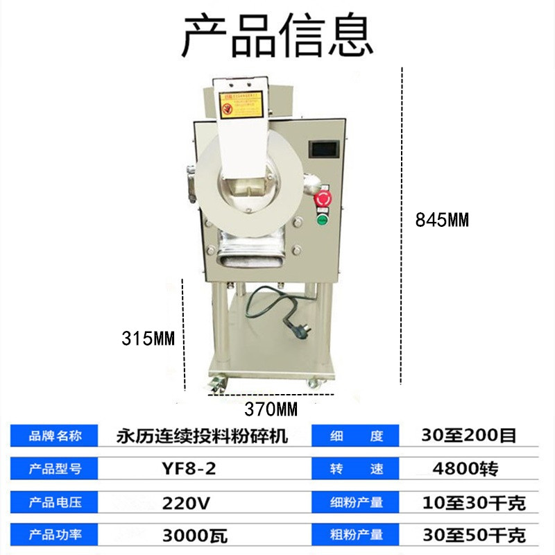 Yongli YF8-2 High Efficiency 6 Hammer Tianqi Sanqi Mill 3000W Ultrafine 200-mesh Traditional Chinese Medicine Mill