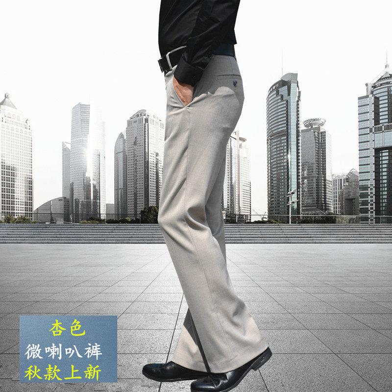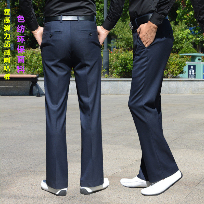 Trendy New Pint Micro Horn Pants Pendant Feel Elastic Free ironing Western Pants Non high waist pants Men's Korean version casual wide pants