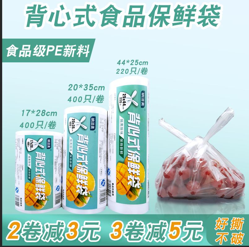 Vest-style fresh-keeping bag household economic size thickened disposable roll packaging portable food plastic bag