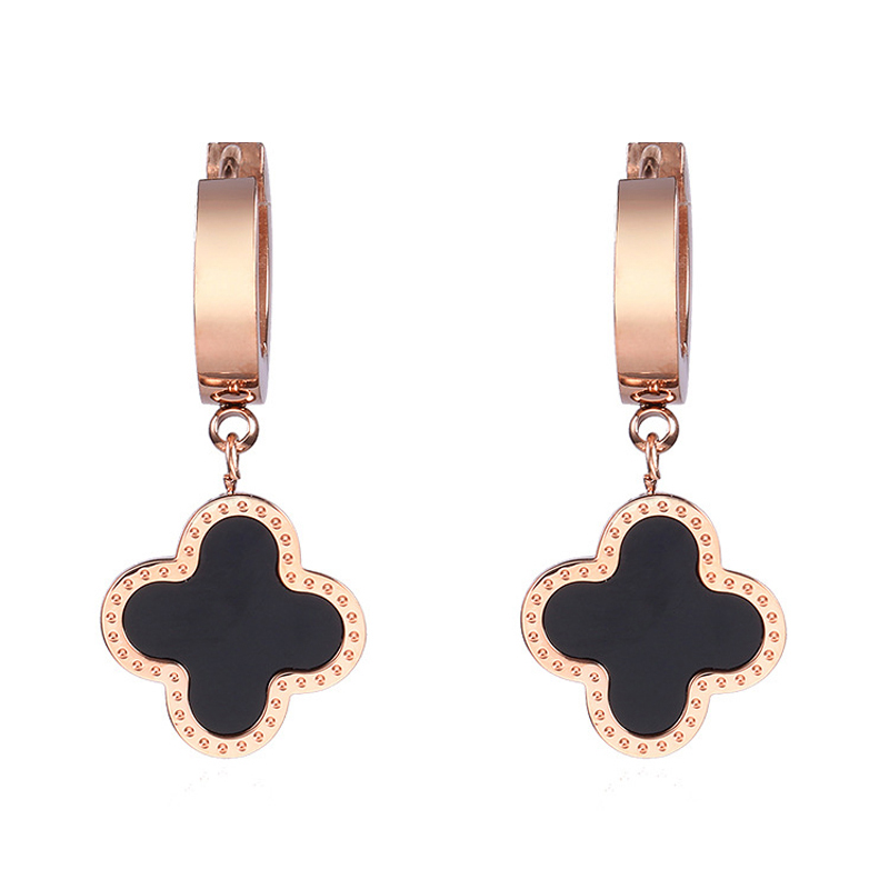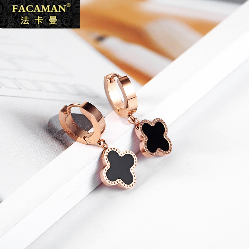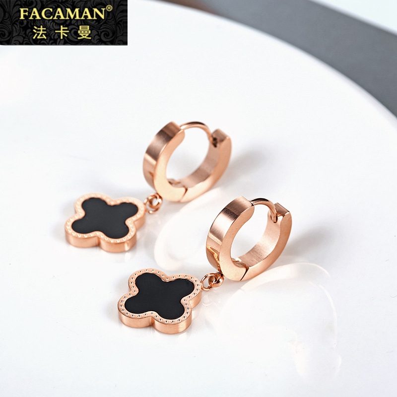 Faqman Light Luxury Brand Four-Blade Earring Female New Ear Needle Rose Gold Temperance Earbutton Long Edition Personality Trend