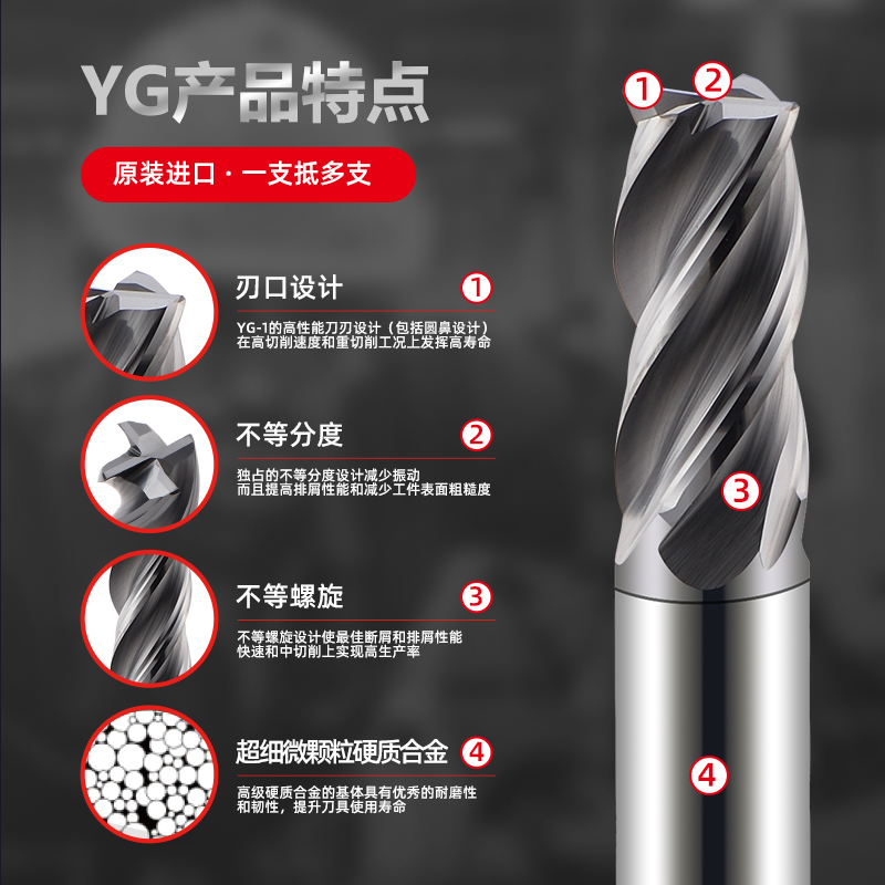 South Korea YG-1 stainless steel high-temperature alloy special 4-blade c-angle tungsten steel alloy milling cutter V7plusGMF66