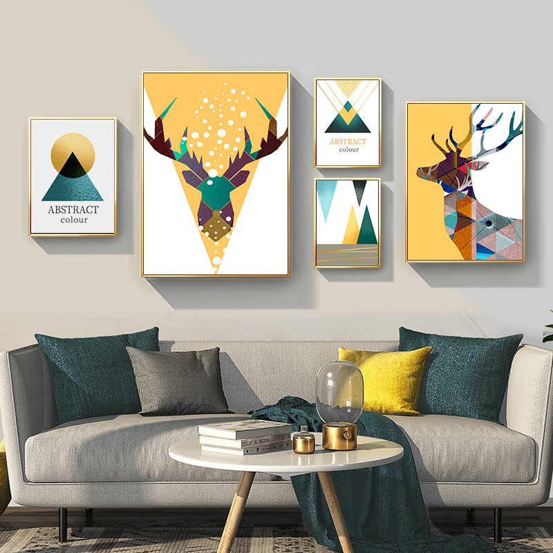 Living room decoration painting Nordic style sofa wall background light luxury hanging painting modern simple combination elk lucky mural