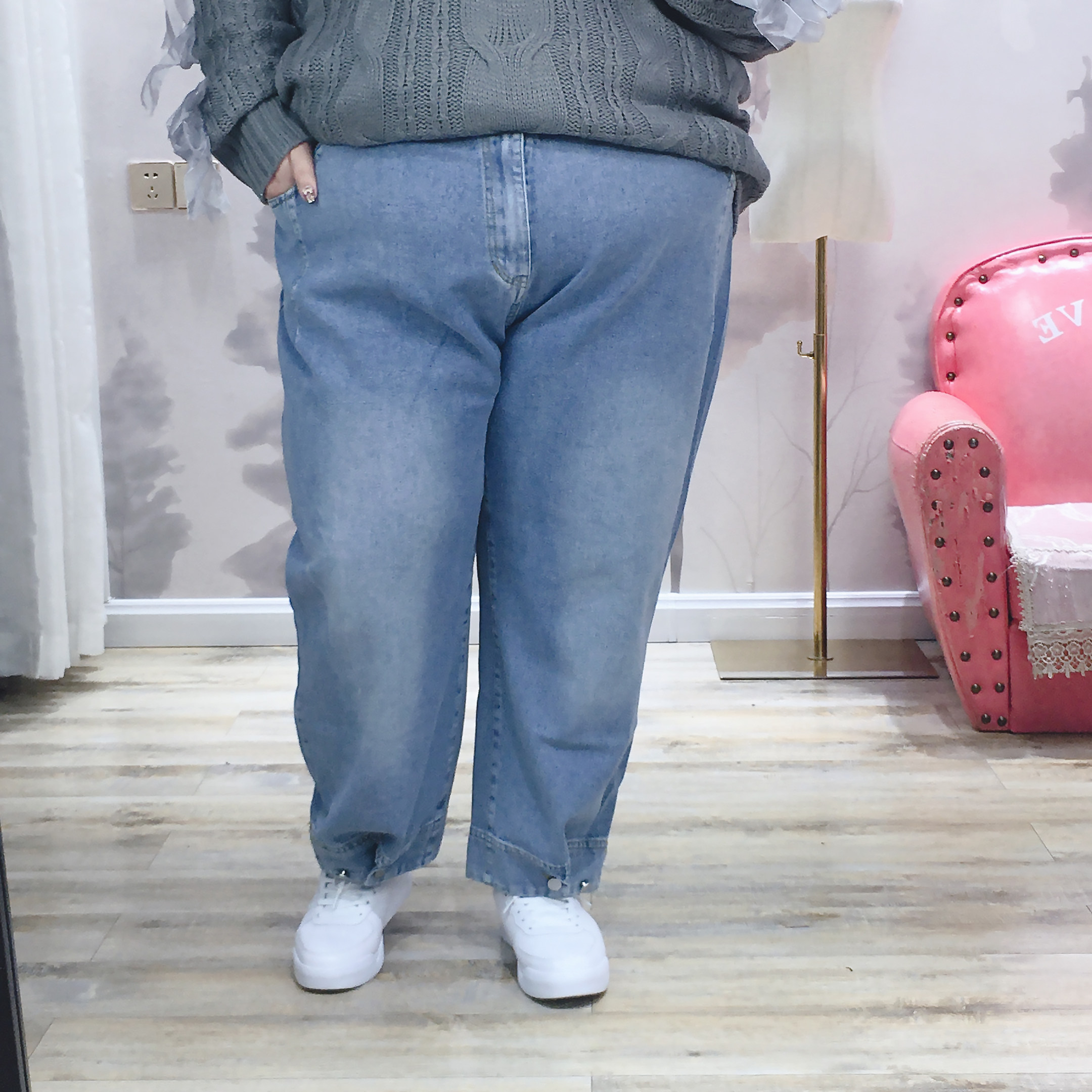 Fat fairy Yingying autumn dress leggings jeans 300 catties large size women's personality high waist loose straight pants