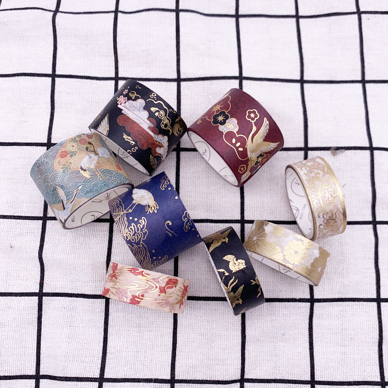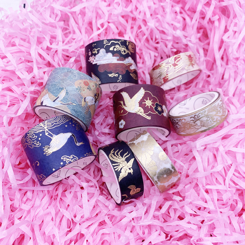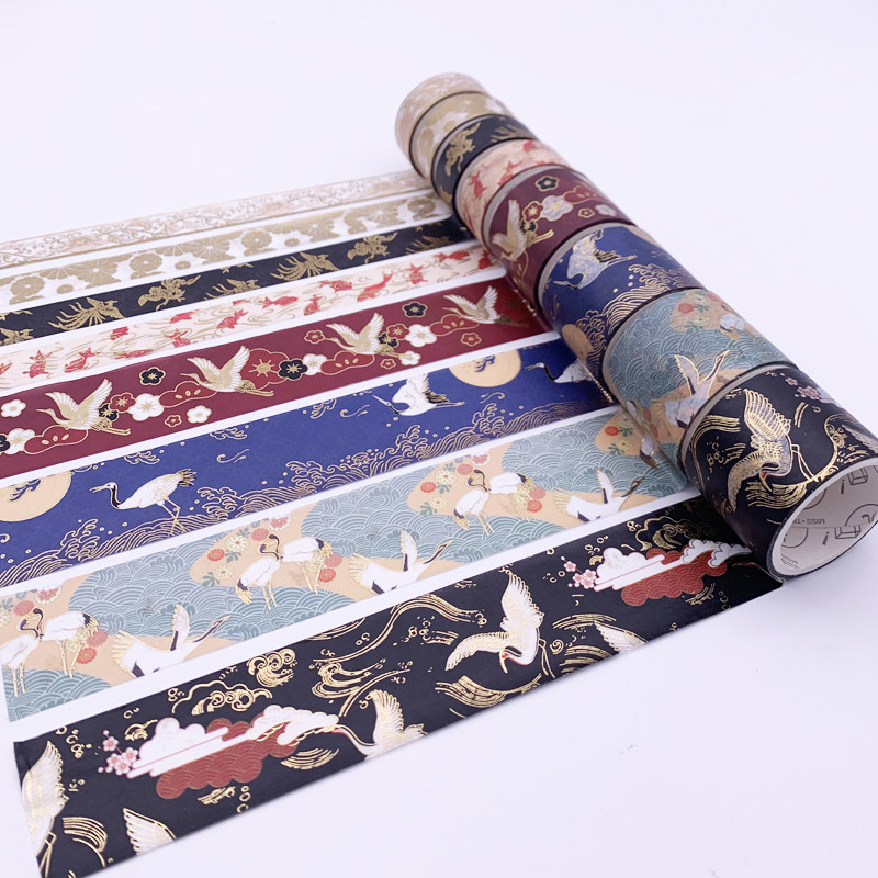 Washi tape antique Chinese style fairy landscape painting Xiangyun crane bronzing DIY hand tearing hand account decoration