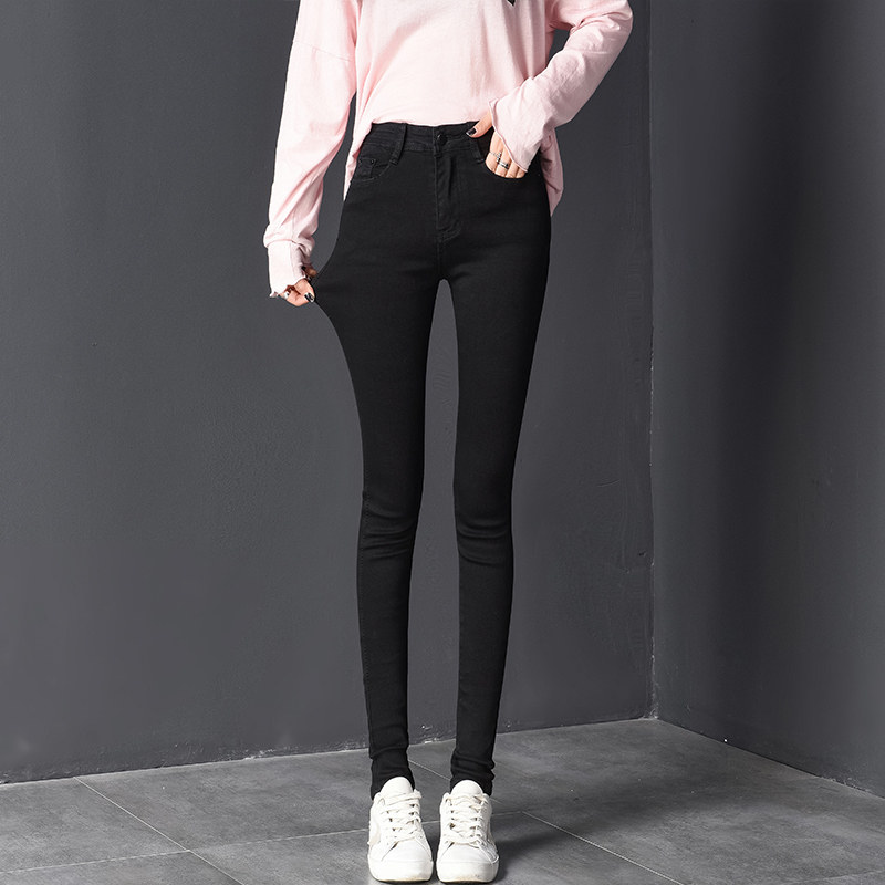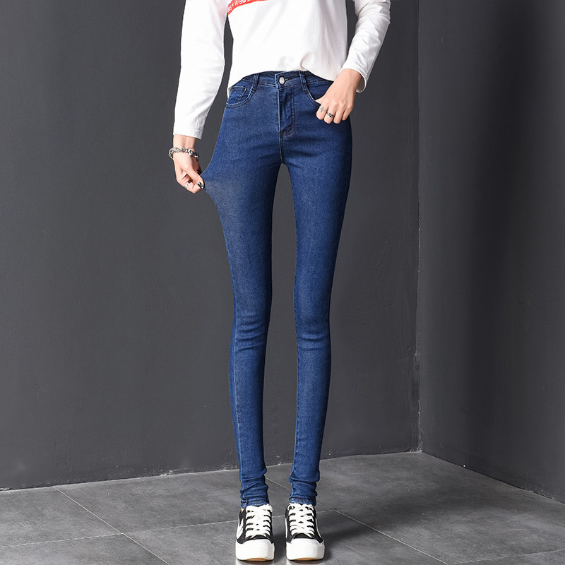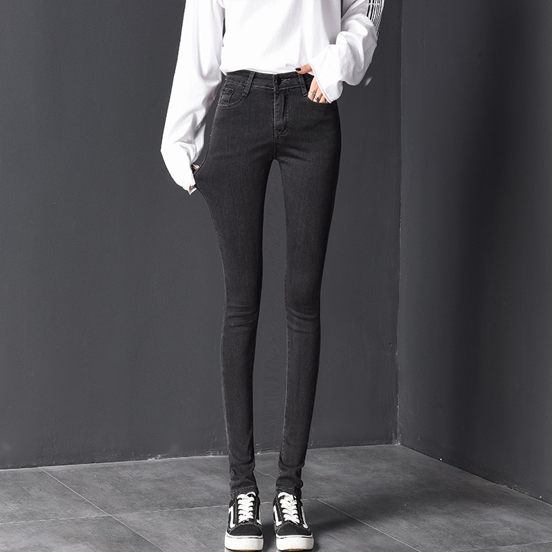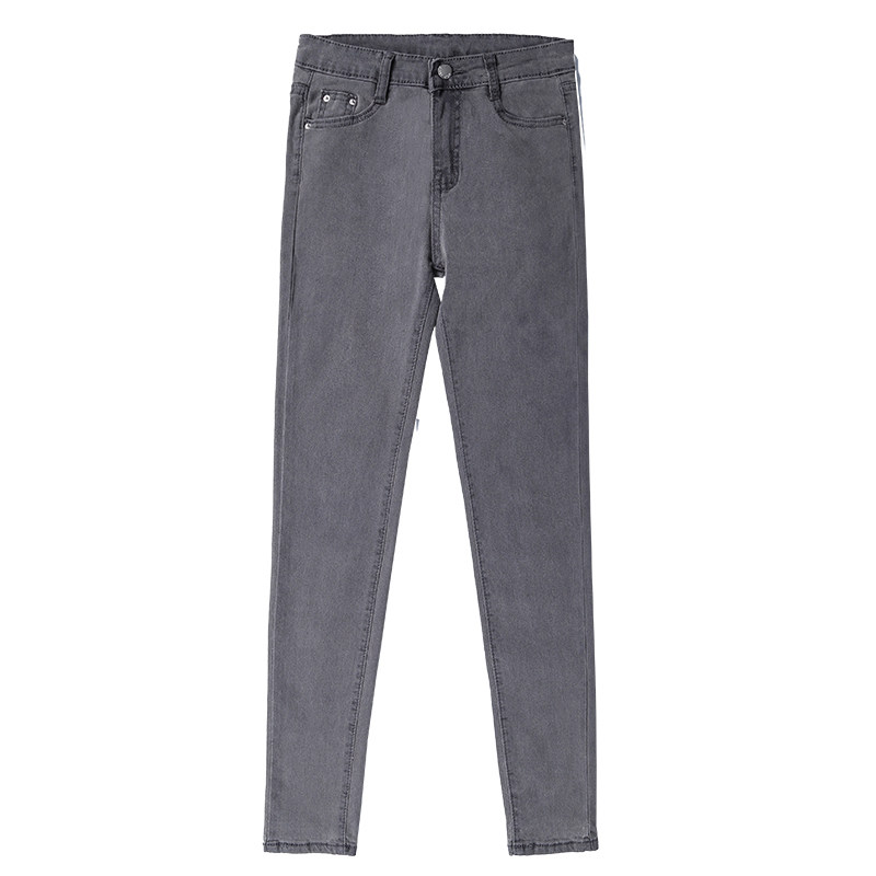 Smoke gray jeans women's autumn 2022 new high waist elastic long pants slimming all-match pencil pants